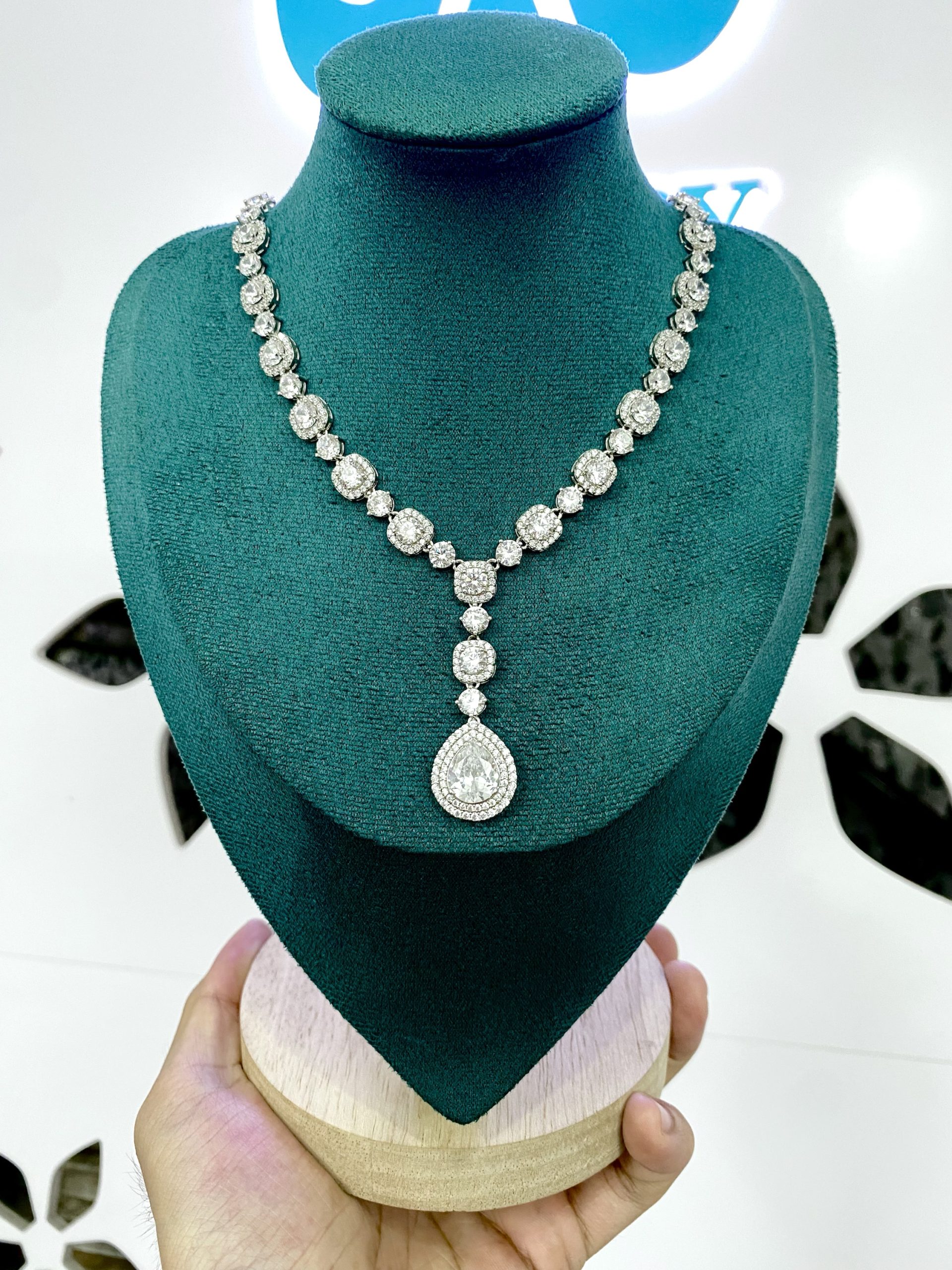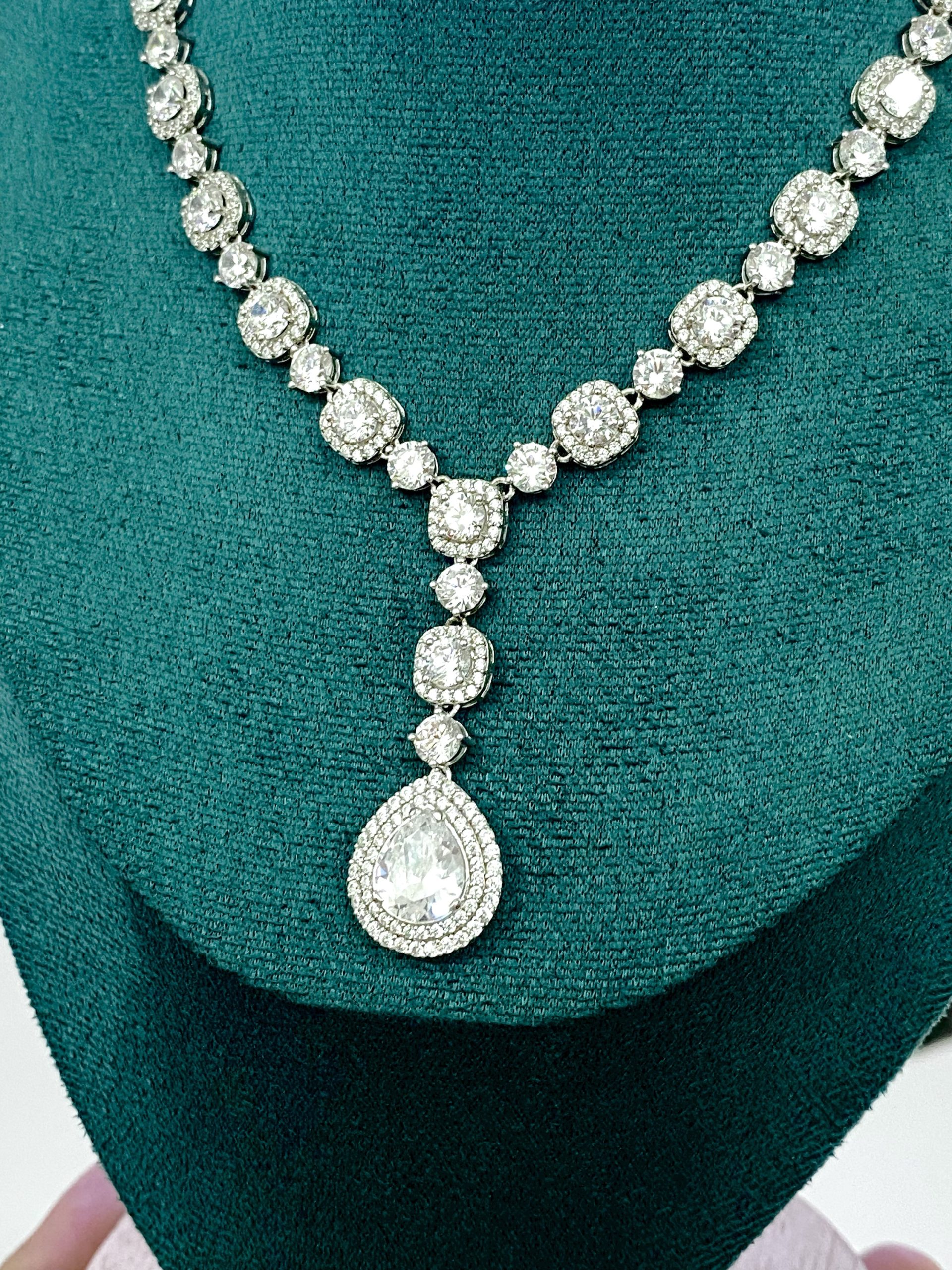 Dây chuyền tennis kim cương CZ – Pear Diamond