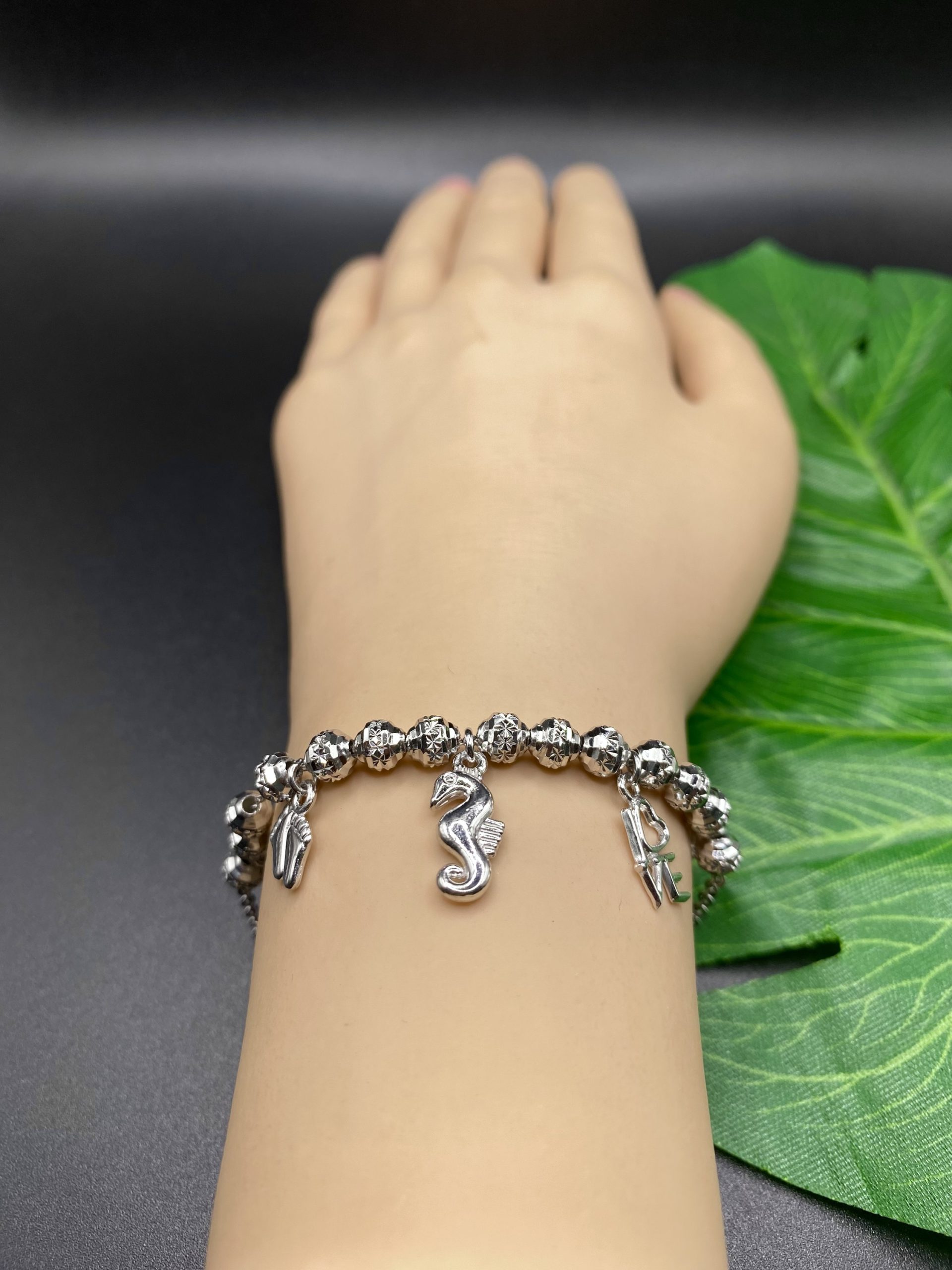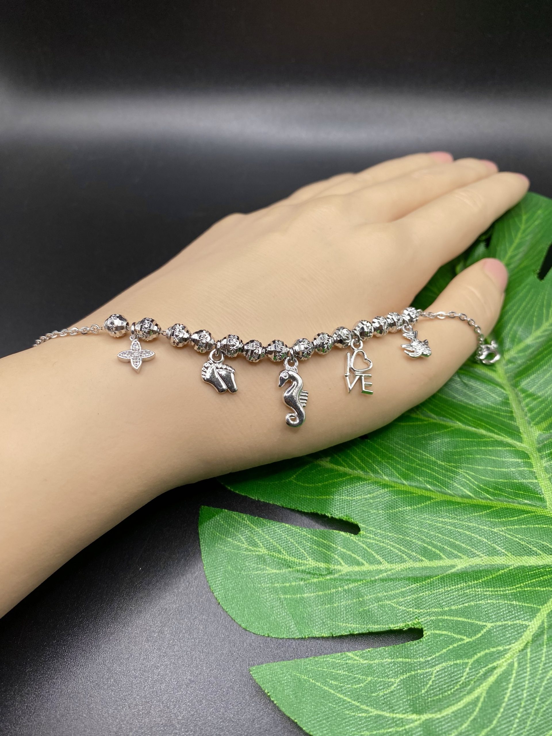 Lắc tay bi kết charm bạc Ý xi bạch kim