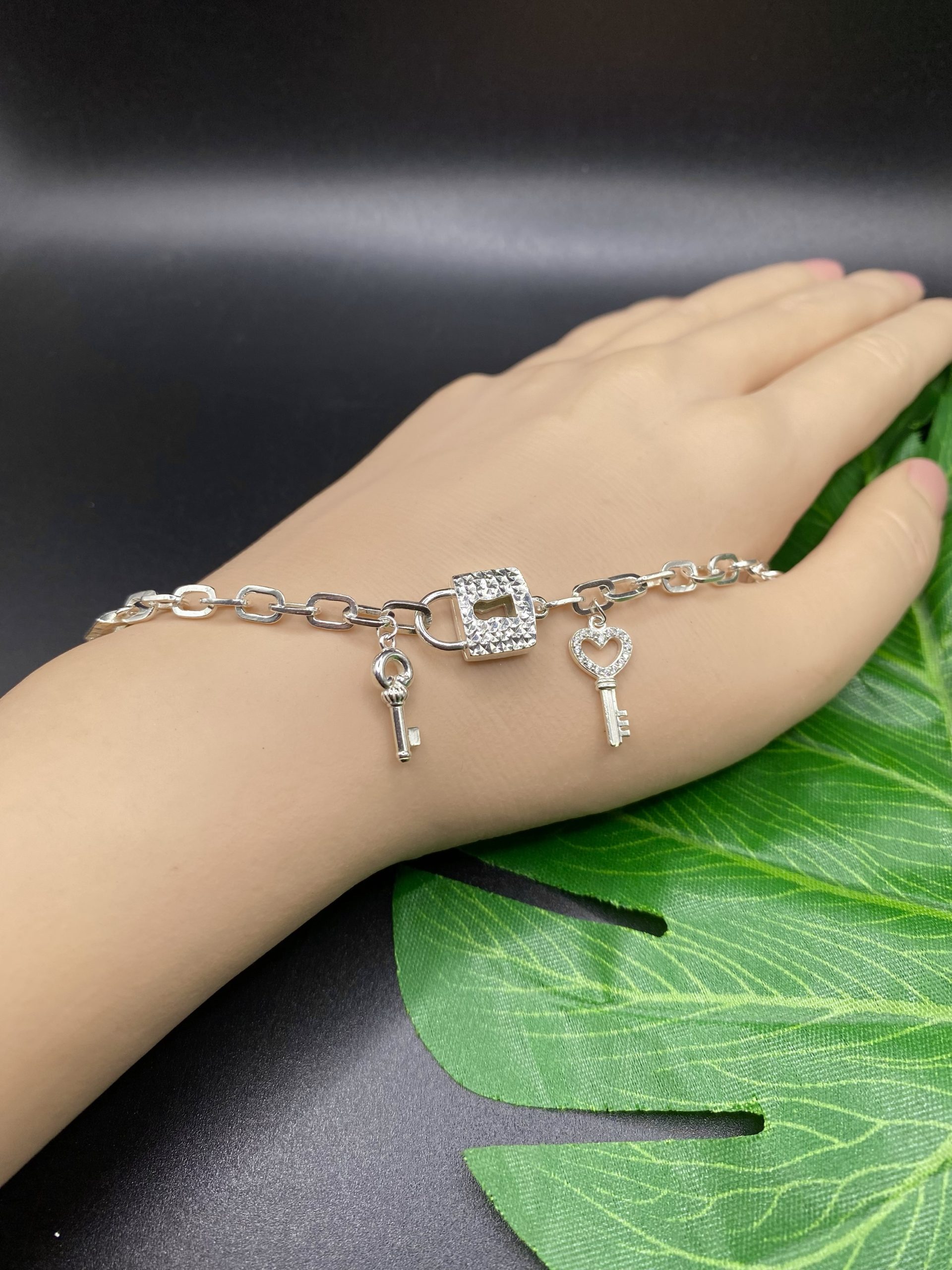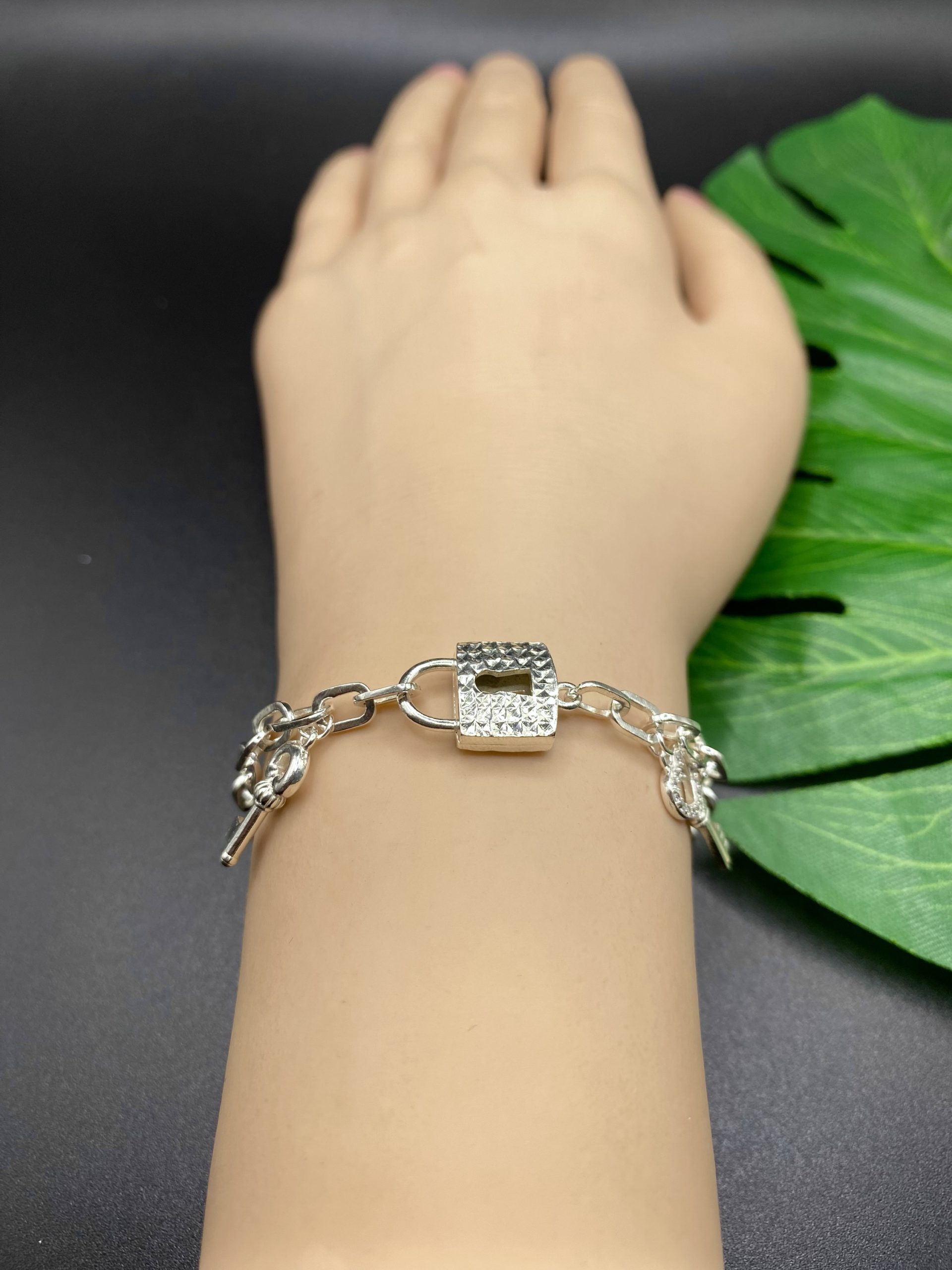 Lắc tay kết mặt khoá charm tòn teng