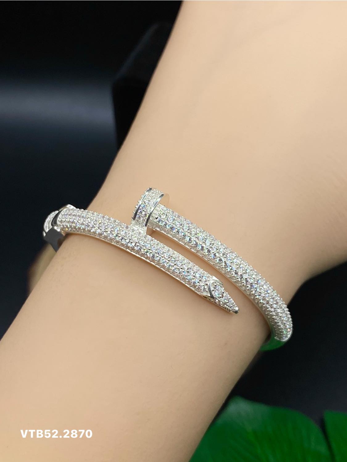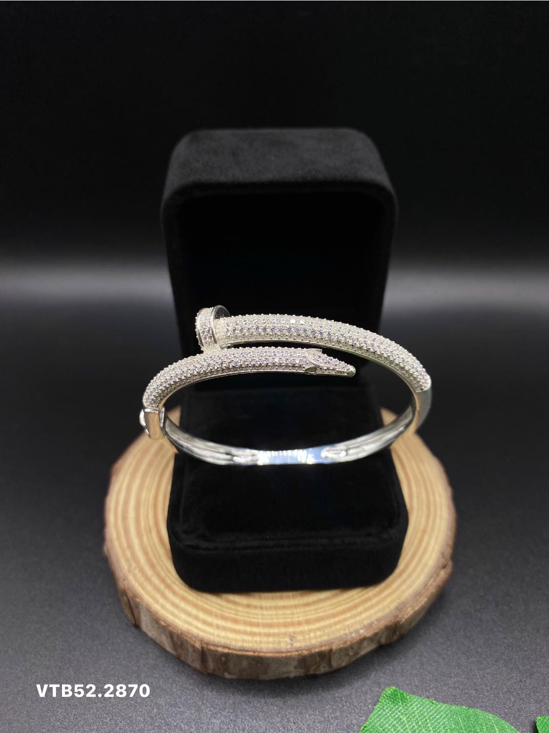 Vòng tay bạc nữ là điểm nhấn hoàn hảo tôn lên vẻ đẹp thanh lịch và nữ tính. Được chế tác từ bạc cao cấp kết hợp cùng đá đính lấp lánh, mỗi thiết kế mang nét mềm mại nhưng vẫn đầy sang trọng. Không cần họa tiết cầu kỳ, vòng tay tập trung vào đường nét tinh gọn, ánh sáng phản chiếu nhẹ nhàng giúp tô điểm cổ tay và tạo nên sức hút tự nhiên.
